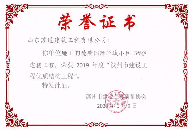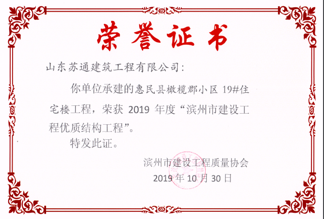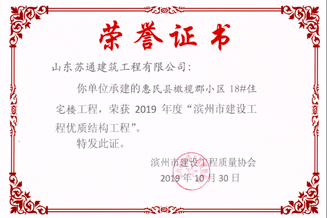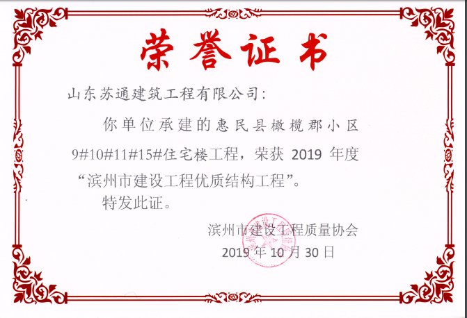 山東蘇通建筑工程有限公司,創(chuàng)建于2009年8月。目前擁有房屋建筑工程施工總承包壹級、市政公用工程施工總承包叁級、水利水電工程施工總承包叁級資質(zhì),同時還具有建筑裝修裝飾工程專業(yè)承包貳級、消防設(shè)施工程專業(yè)承包貳級、鋼結(jié)構(gòu)工程專業(yè)承包叁級、建筑機電安裝工程專業(yè)承包叁級等專業(yè)承包資質(zhì)。 公司總部坐落于山東省濱州市濱城區(qū)黃河十二路877號,現(xiàn)有辦公面積約2000平方米,機構(gòu)設(shè)黨支部工會辦公室、總經(jīng)理辦公室、綜合辦公室、工程管理部、經(jīng)營預(yù)算部、資產(chǎn)財務(wù)部、材料設(shè)備部、運行管理部、法律事務(wù)部等多個職能部門。公司管理體系已經(jīng)通過了GB/T 19001及GB/T 50430質(zhì)量管理體系、GB/T 24001環(huán)境管理體系(EMS)、GB/T 28001職業(yè)健康安全管理體系(OHSMS)等體系的認(rèn)證。 公司承建完工了濱州市建大教師之家、建大清怡苑、香格里拉水岸綠城住宅小區(qū)、雙泰建大城、曲阜崇德公館住宅小區(qū)、北海新區(qū)御景藍(lán)灣住宅小區(qū)、沾化德榮國際華城住宅小區(qū)、惠民橄欖郡住宅小區(qū)等工程項目,目前在建工程項目有:濱州市頤高國際電子商務(wù)產(chǎn)業(yè)園住宅小區(qū)項目、濱州市東盛國際項目、高新區(qū)建大中央華府住宅小區(qū)項目、濱州市融匯新里程住宅小區(qū)項目、濱州市建大秦皇壹號住宅小區(qū)項目、濱州市森林花...